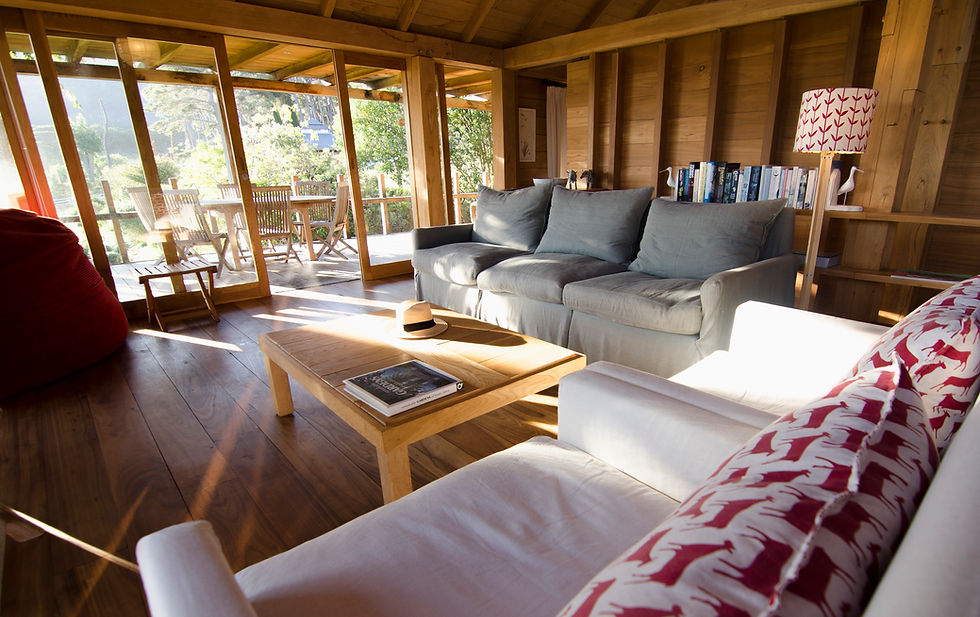 Hand built from locally-sourced wood and stone Wild Peach Cottage is set in a private corner of our five acre garden.